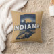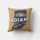 Stilvolle Kissen im Retrostil mit landschaftlicher Staat-Silhouette von Indiana auf hellbraunem Hintergrund.