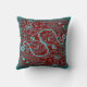 Dieses ist ein Vintages kastanienbraunes und aquamarines Paisley-Muster. Der kastanienbraune Hintergrund hat eine Veränderung im Schatten, zum einer Retro etwas grungy Wirksamkeit zu verleihen. Das quadratische Kissen würde einen eleganten Akzent auf einer traditionellen Couch oder einem Lehnsessel machen.