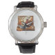 Uhr, Vintage Männeruhr mit schwarzem Lederarmband