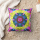 Retro Mandala Blume Blau Gelb und Rosa Kissen