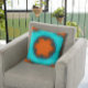 Dieses Retro-Mandala-Design zeichnet sich durch orange und blau in einer Blume aus. Funky und lebendige Bilder für jeden, der helle Farben mag!