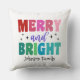 Retro Merry and Bright Customizable Name Christmas Kissen
