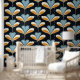 Fett + Erklärung: "Machen Sie eine Aussage mit diesem Retro Mitte des Jahrhunderts Wallpaper in [Farben]. Funky, kühn und voller 70er-Charme - perfekt für Spielmauern, kreative Studios und moderne Vintage Zuhause."