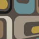 Retro Mod Ovals Blue Brown Mustard Beige Black Tapete