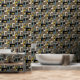 Bring a touch of retro flair to your interiors with this joyful wallpaper featuring a unique geometric design. The retro mood pattern combines calm and vivid colors that can transform any room into a stylish haven. Perfect for those looking to make a bold statement, this wallpaper is sure to impress your guests and enhance your decor. Explore the endless possibilities of revitalizing your environment and express your personality with this eye-catching design.