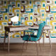 Bring a touch of retro flair to your interiors with this joyful wallpaper featuring a unique geometric design. The retro mood pattern combines calm and vivid colors that can transform any room into a stylish haven. Perfect for those looking to make a bold statement, this wallpaper is sure to impress your guests and enhance your decor. Explore the endless possibilities of revitalizing your environment and express your personality with this eye-catching design.
