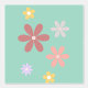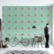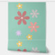 Decorate your home with this fun retro daisy pattern wallpaper. The daisies are many different sizes and colors with light teal background.