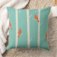 Retro Orange Birds on Birch Trees Illustration Kissen