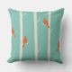 Ein Kissen mit einer Darstellung von Birken mit Orangenvögeln, die auf ihren Zweigen sitzen. Retro grüner Hintergrund.