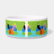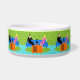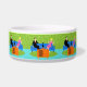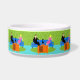 Dieses Retro-Paar mit Cat Keramik Pet Bowl verfügt über ein Cartoon-Paar, das sich gemütlich beim Fernsehen auf einem modernen, blauen Sofa aus der Mitte des Jahrhunderts ansieht. Die Katze hat jedoch andere Ideen. Auf der einen Seite des Sofas steht ein gut aussehender Mann in einem schwarzen Anzug mit roter Krawatte. Auf der anderen Seite des stylischen Sofas befindet sich eine schöne, blonde Frau in einem rosa, heißen Kleid. Es wäre gut, wenn es nicht die schlanke schwarze Katze gäbe, die das Sofabett in der Mitte beansprucht. Dieses minimalistische Design der 60er Jahre ist ein Set in einem stilvollen Wohnzimmer. Die Kulisse des Sofas ist eine grüne, steinerne Wand. Auf dem Wasserboden befindet sich ein runder, grüner Teppich, der zur Steinmauer passt. An vorderster Front des Designs sehen wir die Rückseite eines orangefarbenen Set mit Kaninchenohren, das das Lieblingsprogramm der Katze zu spielen scheint.