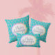 Dieses Palm Springs Blue Kissen mit pastellfarbenen Palmen ist so viel Spaß! Spielvolle, mehrfarbige, sanfte Farbtöne auf einem lebendigen türkisfarbenen Hintergrund verleihen der Wüstenoase Palm Springs, Kalifornien, das moderne Flair des 20. Jahrhunderts. Sie können den Text mit Ihrer eigenen Nachricht bearbeiten!