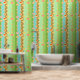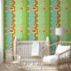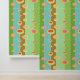 Retro Pastellbrights 70er Erlebnisreiche Farbkombinationen mit Ovalen und Streifen in Weich-Grün, Blau, Rosa und Gelb Warm und optimistische Farben von Gras und Himmel und Erde und Sonne