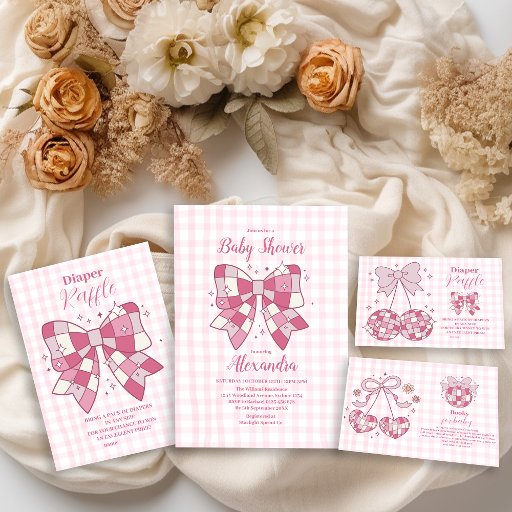 Retro Pink Bow Girl Baby ShowerDesignt von Andreea Eremia