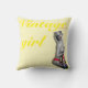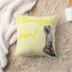 Retro Pinup Vintager Glamour Girl Cushion mit Original Pinup-Kunstwerk ©"Miss Cherrie Au Lait - Bath". Mit dem Text "Vintages Mädchen". Retro Gelb und Orange Farben.