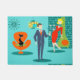 Honig, bin ich Zuhause! Diese Retro Raum-Alters-Cartoon-Paar-Tür-Matte hat Sie das Gefühl, das von den Cartoonpaaren auf einem Throwkissen neidisch ist! Die Ausrüstungsbeschreibungen ein Türkishintergrund mit aquamarinen Ziegelsteinen und einem olivgrünen Grün, Kegelkamin. Eine glatte, schwarze Katze sitzt auf einem glatten orange Stuhl. Es gibt eine aquamarine, Sternexplosionwanduhr und eine Zweireihe hängende Lampe in den Schatten von Gelbem, von Blau und von Schwarzem. Front und Mitte, gibt es einen bemerkenswerten, Martini-swilling Geschäftsmann in einem blauen Anzug und eine orange Krawatte. Zu seiner Seite trägt seine blonde Bombe einer Trophäe-Ehefrau ein rotes Wigglekleid und hält einen Behälter der Martinis. VA-VA-VA-voom!