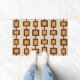 Ein einfaches, modernes abstraktes Kunstmuster aus der Mitte des Jahrhunderts mit abgerundeten Quadraten und Rechtecken.