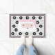 Dieses niedliche schwarz-weiße Imitat Fliesenboden ist perfekt für jede Zuhause. Die klaren Linien, die einfachen Farben und das Vintage Muster sind zeitlos und vielseitig. Diese Holiday matte beinhaltet ein gedrucktes Imitat Kachel und rosa Santa Design auf einer Gummi-Matte, die haltbar und leicht zu reinigen ist.