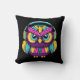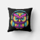 Groovy, bunte Retro-Eule mit Kopfhörer. Diese Cartoon Eule hat farbenfrohe Federn in Rosa, Blau, Gelb, Türkis und lila. Er trägt ein Set von modernen funky Kopfhörern in Gelb und Blau.