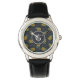 Uhr, Vintage Männeruhr mit schwarzem Lederarmband