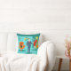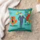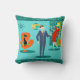 Schatz, ich bin Zuhause! Dieser Retro Space Age Cartoon Couple Throw Kissen wird Ihnen Gefühl neidisch auf das Cartoon Paar auf einem Kissen werfen! Die Einrichtung besteht aus einem türkisfarbenen Hintergrund mit aquamarinen Ziegelsteinen und einem Olivgrün mit Kamin. Eine schläfrige, schwarze Katze sitzt auf einem schlanken Orangenstuhl. Es gibt eine aquamarine, Sternexplosion Wanduhr und eine zweistufige Anhängerlampe in Gelb-, Blau- und Schwarztönen. Vorn und Mitte steht ein angesehener, martinistischer Geschäftsmann in einem blauen Anzug und einer orangefarbenen Krawatte. An seiner Seite trägt seine blonde Bombe einer trophischen Ehefrau ein rotes Rumpf-Kleid und hält ein Fach Martinis. Auf der gegenüberliegenden Seite befinden sich aquamarine und türkisfarbene Ziegelsteine. Va-va-va-voom!