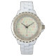 Eine wunderbare Damenuhr mit weißem Armband und grün-weiß-kariertem Ziffernblatt. Trägt sich ganz fabelhaft. Exzellenter Druck, sehr klare Farben. Schönes Design.