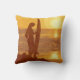 Dekoratives Kissen mit Retro-Sonnenuntergang Surfer Mädchen Design.