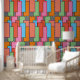 Eine Tapete mit Retro-Thema und Vintagem Ambiente, die eine harmonische Mischung aus Elementen bietet, die eine nostalgische und spielerische Atmosphäre schaffen.