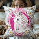 Retro Unicorns und Daisis Muster auf blau Kissen