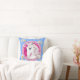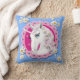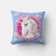 Retro Unicorns und Daisis Muster auf blau Kissen