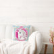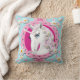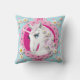 Retro Unicorns und Daisis Muster auf blau Kissen