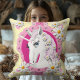 Retro Unicorns und Daisis Muster auf Gelb Kissen
