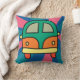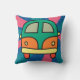 Helles und lustiges Kissendesign mit einem Retro-Van in lebhaften Farben auf psychedelischem Hintergrund. Ideal, um eine Touch Nostalgie und Hippie-Vibes zu jedem Ort hinzuzufügen.