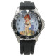 Uhr, Vintage Männeruhr mit schwarzem Lederarmband
