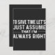 Zeit retten lasse, anzunehmen, dass er immer recht hat, einige Zeit retten, lasse einfach anzunehmen, im immer recht, Spaß Witz, Sarkasmus, zukünftiger Bankmanager, pensionierter Bankmanager, Bankmanager, in der Liebe Wirtschaftslehre, Absolvent, Inspiration für Zuhause Bank Manager ist ein Zuhause-Polizeibeamter, im an, um zu rett Zeit, anzunehmen, im nie falsch, einfach annehmen, retten Zeit, nur nach einer Zeit, nur nach einer Zeit, nach einer Zeit ,