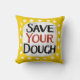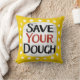 "Rett Dein Teig" ist ein lustiges Textdesign mit weißer Akzent-Form, umgeben von weißen, weißlichen, weißgestrichenen Punkten.