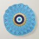 Reversible Evil Eye Mandala in Gold weiß und blau Rundes Kissen