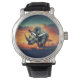Uhr, Vintage Männeruhr mit schwarzem Lederarmband