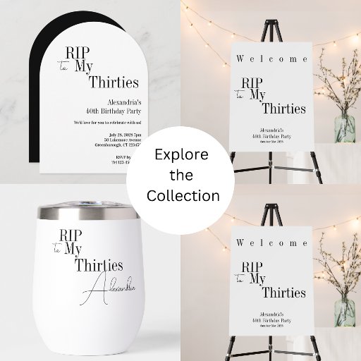 This is a modern, 40th birthday, Halloween adult party design. This simple RIP 30s design, is in minimal black and white with stylish typography. The template is set up for you to simply add your name Halloween birthday party details. Perfect for a cool and fun, Halloween themed, 40th birthday party. To personalize, simply use the personalize this button to add your name and party details, here you can also change the age, or the rest of the text if you want to. Check out the design editing tool to change the color or font. If you need help with personalization, matching products, or for a custom design, contact me via zazzle chat.