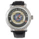Uhr, Vintage Männeruhr mit schwarzem Lederarmband