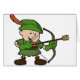 Illustration des jungen Mannes in Robin Hood Kostüm mit Pfeil und Bogen