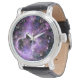 Uhr, Vintage Männeruhr mit schwarzem Lederarmband
