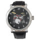 Uhr, Vintage Männeruhr mit schwarzem Lederarmband