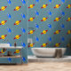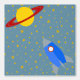 Rocketship to Saturn Design Wallpaper mit Sternen und anpassbarer Hintergrundfarbe.