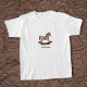 T - Shirt eines Kindes, in dem ein handgefertigtes Rockpferd in Brauntönen dargestellt wird. Passen Sie es mit dem Namen Ihres Kindes an.