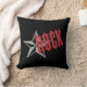 Ein Kissen für einen Felsen-Stern mit einem silbernen Stern und einem roten SchwermetallSchriftart und mit einem Licht über Spray von der Sprayfarbe überstiegen