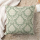 A vintage style decorative damask surface pattern influenced by rococo classical design in cream color detail on a green background.