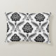 A vintage style decorative damask surface pattern influenced by rococo classical design in black and grey details on a white background.
