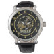 Uhr, Vintage Männeruhr mit schwarzem Lederarmband