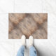 Eine coole, rustikale Bodenmatte mit Foto einer alten Holzplatte.