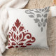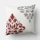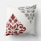 Rolle-Damast-Kunst I rot u. Grau auf Weiß Kissen